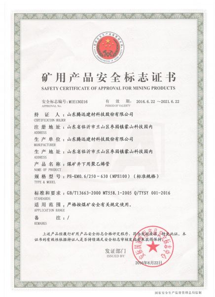 PE给水管材、PE燃气管材及PE阻燃、抗静电矿用管材、PE地源热泵管材、PE虹吸排水管材、PERT地暖管材以及配套PE给水管件等