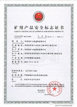 矿用产品安全标志证书