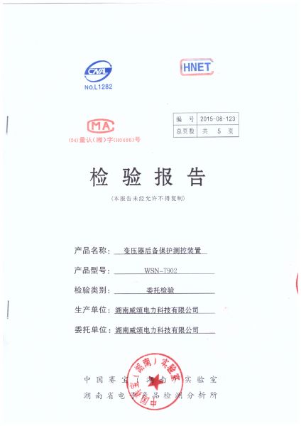 变压器后背保护测控装置检测报告WSN-T902